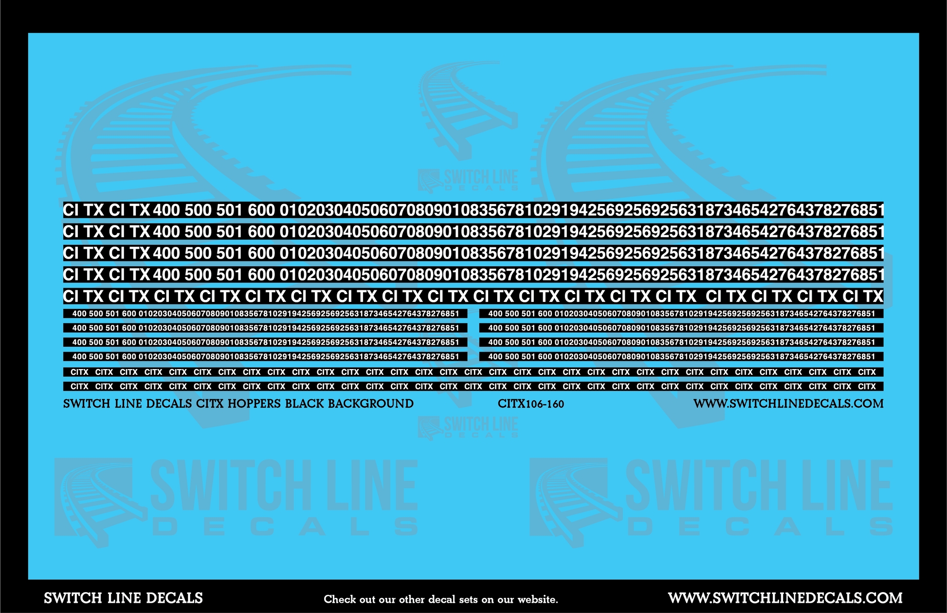 N Scale CITX Bold Hopper Patches Black Background Decal Set