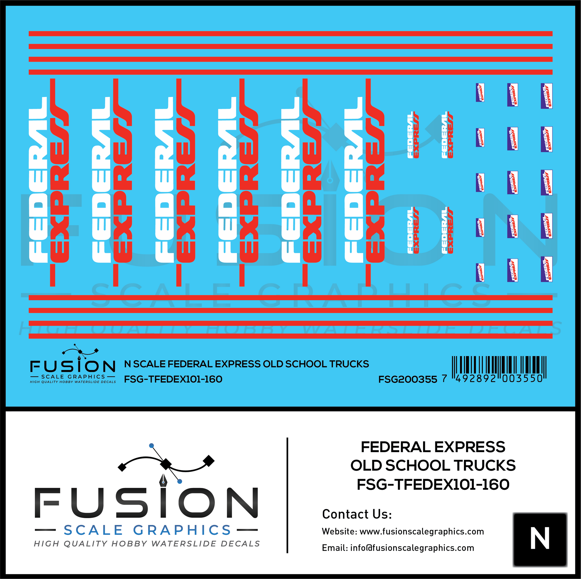 N Scale Federal Express Purple and White Old Trailers and Truck Decal Set