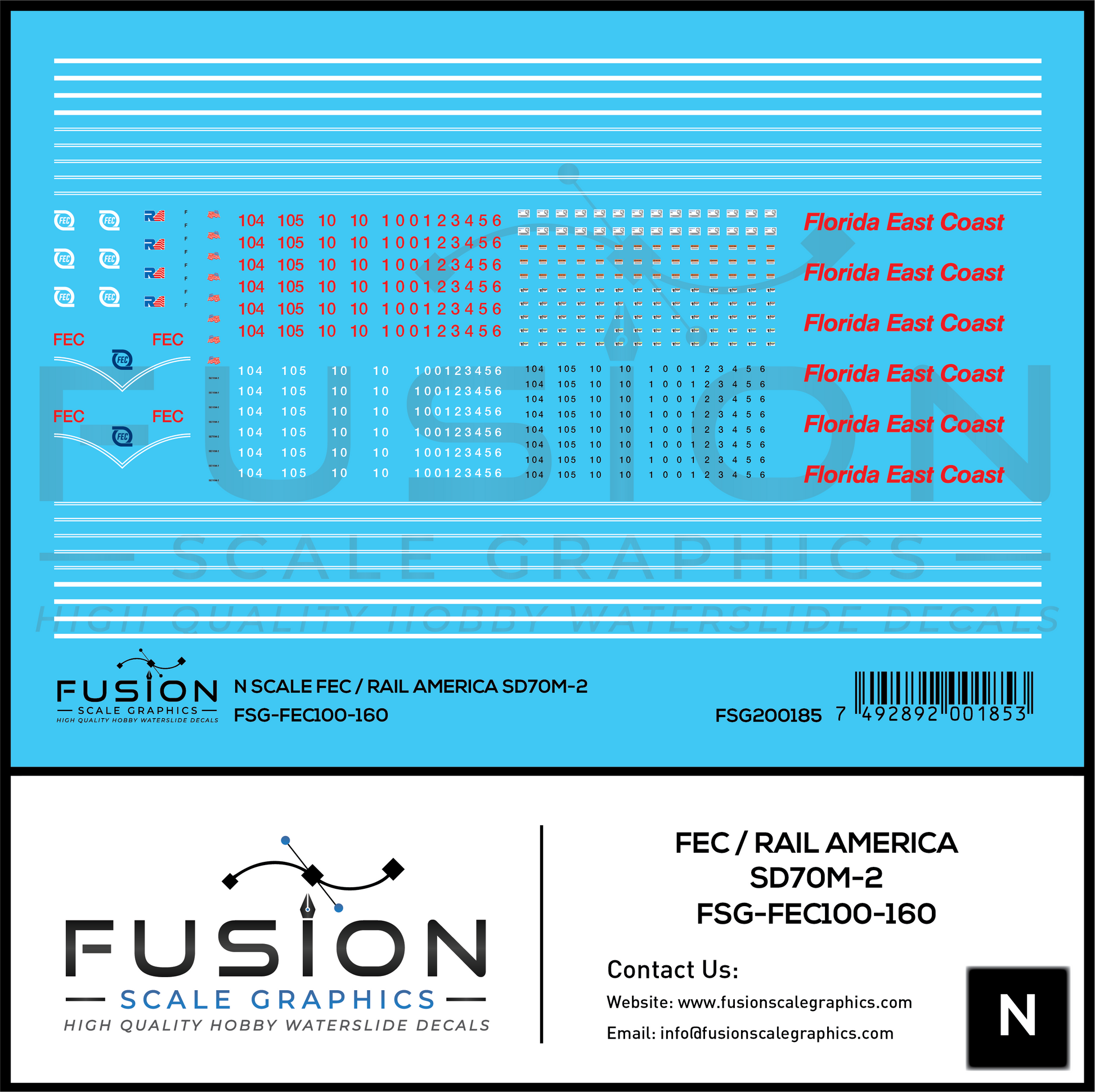 N Scale Florida East Coast/Rail America EMD SD70M-2 Locomotive Decal Set