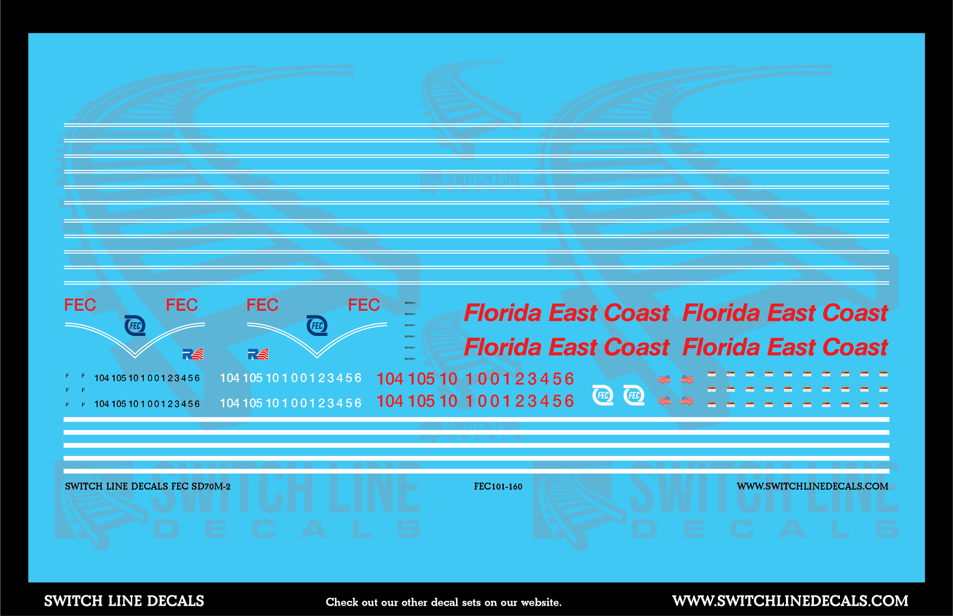 Florida East Coast Red and White Scheme SD70M-2 Locomotive Decal Set