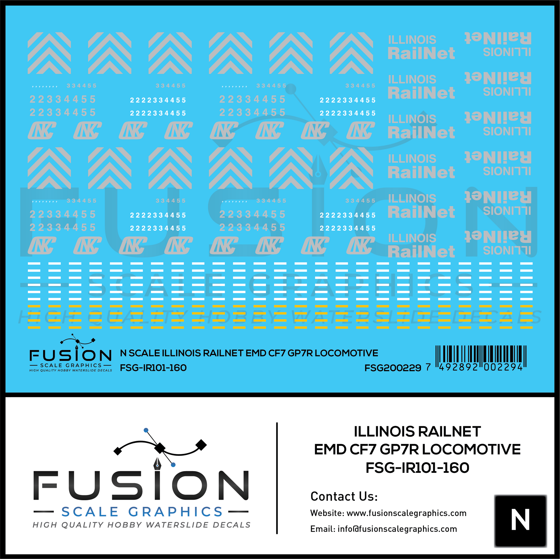 N Scale Illinois Railnet EMD CF7 GP7R Locomotive Decal Set