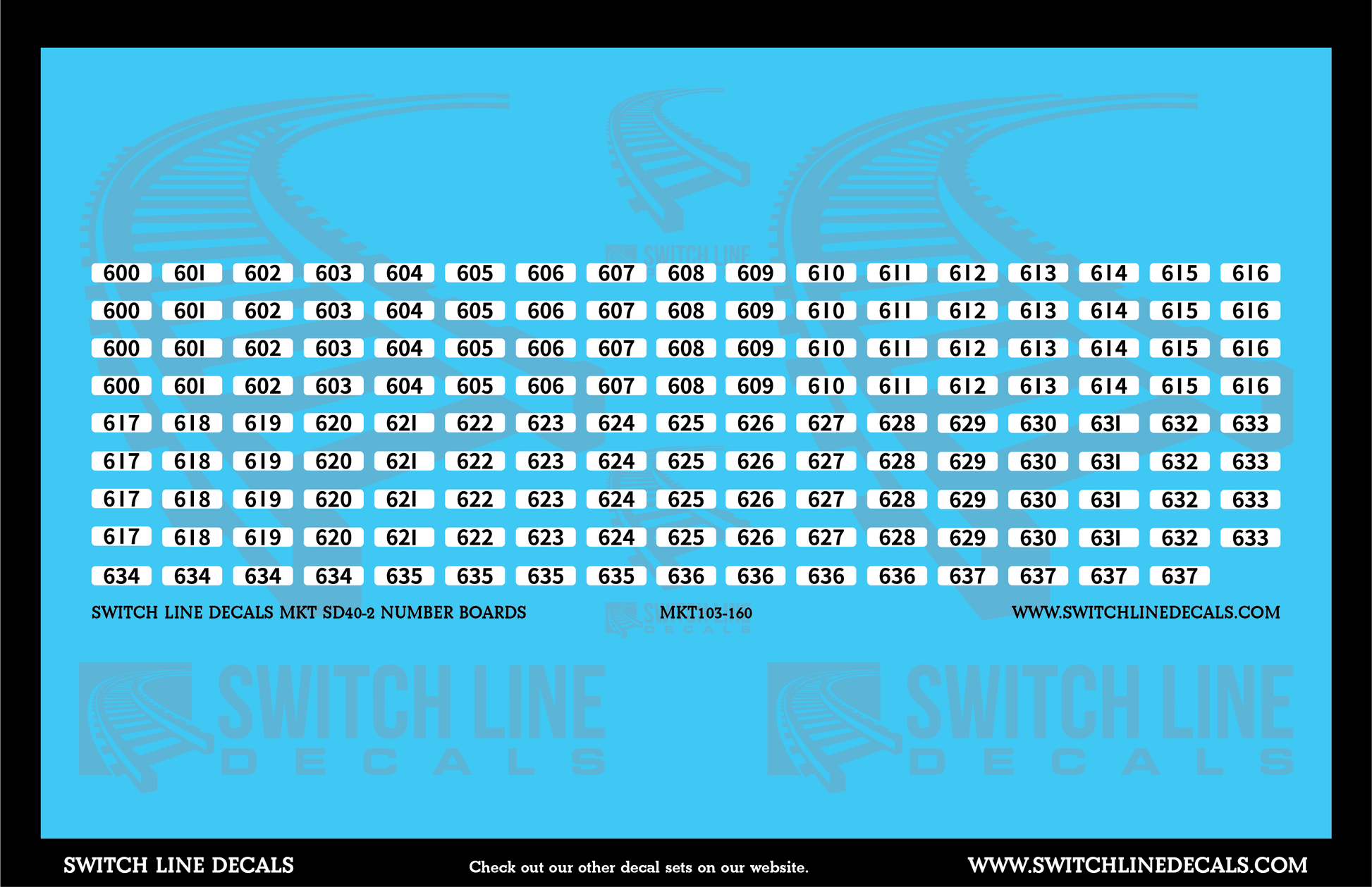 N Scale MKT SD40-2 Number Boards V1 Decal Set