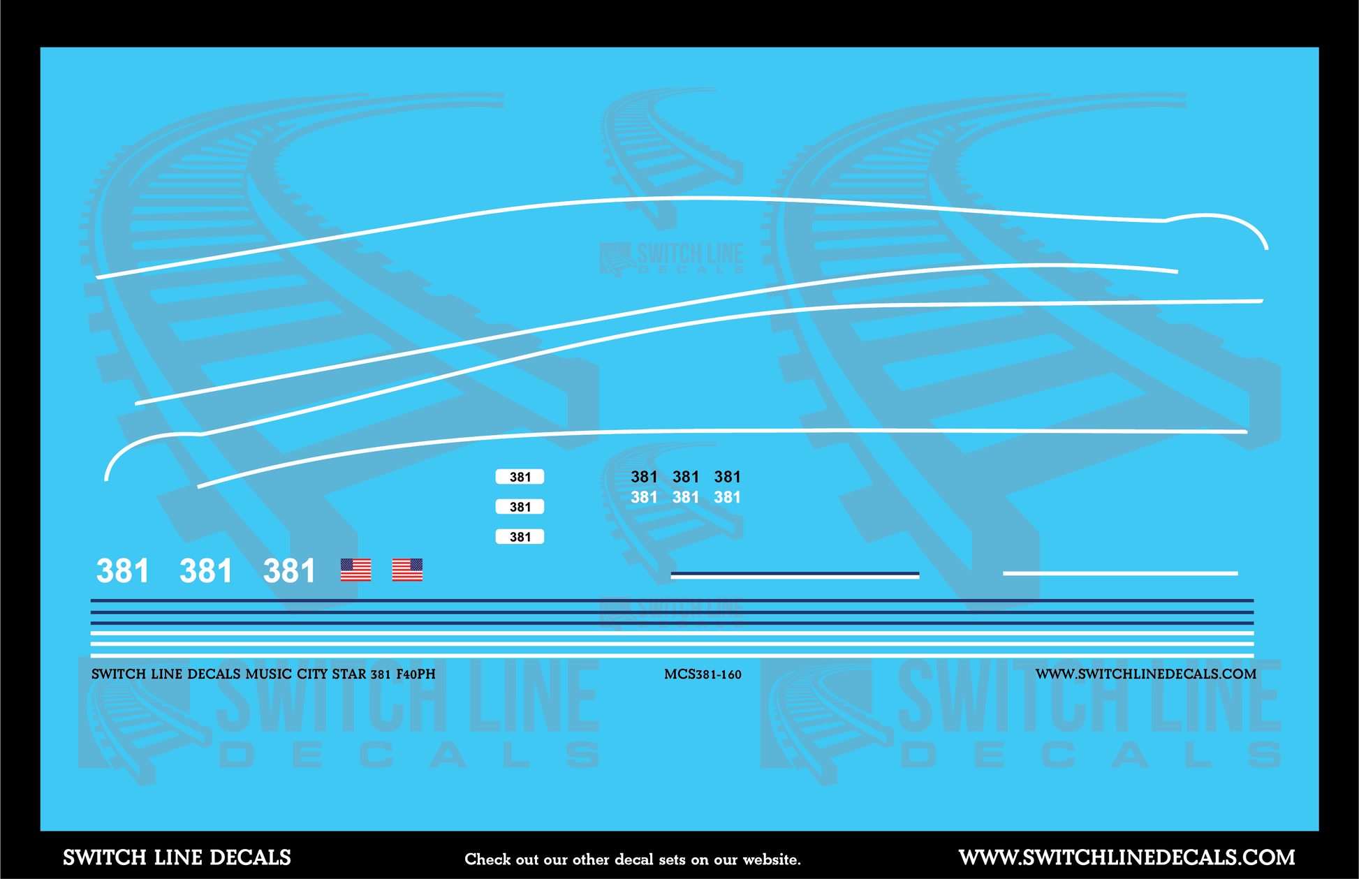 N Scale Music City Star F40PH 381 Locomotive Decal Set