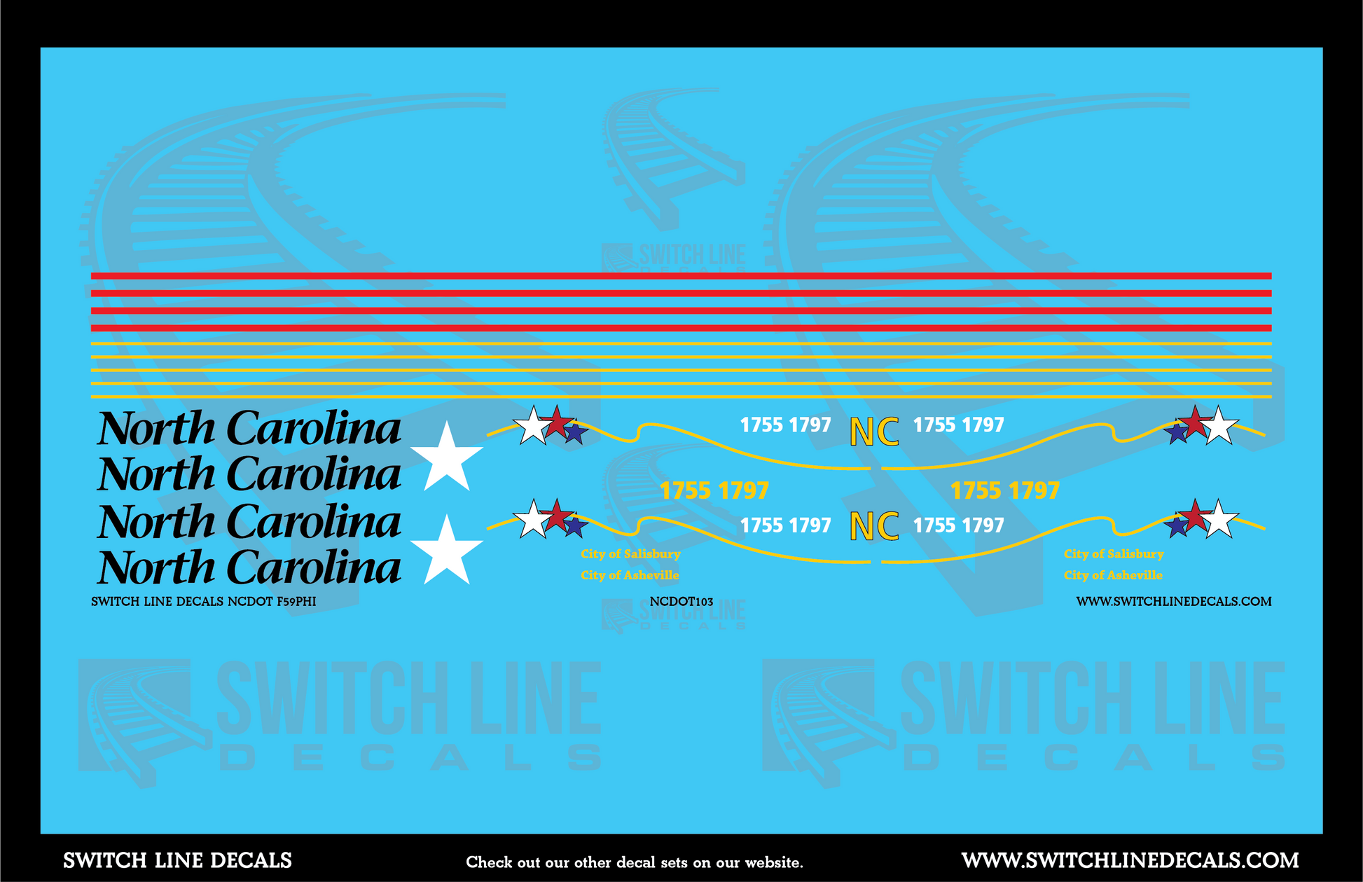 N Scale NCDOT F59PHI Locomotive Decal Set