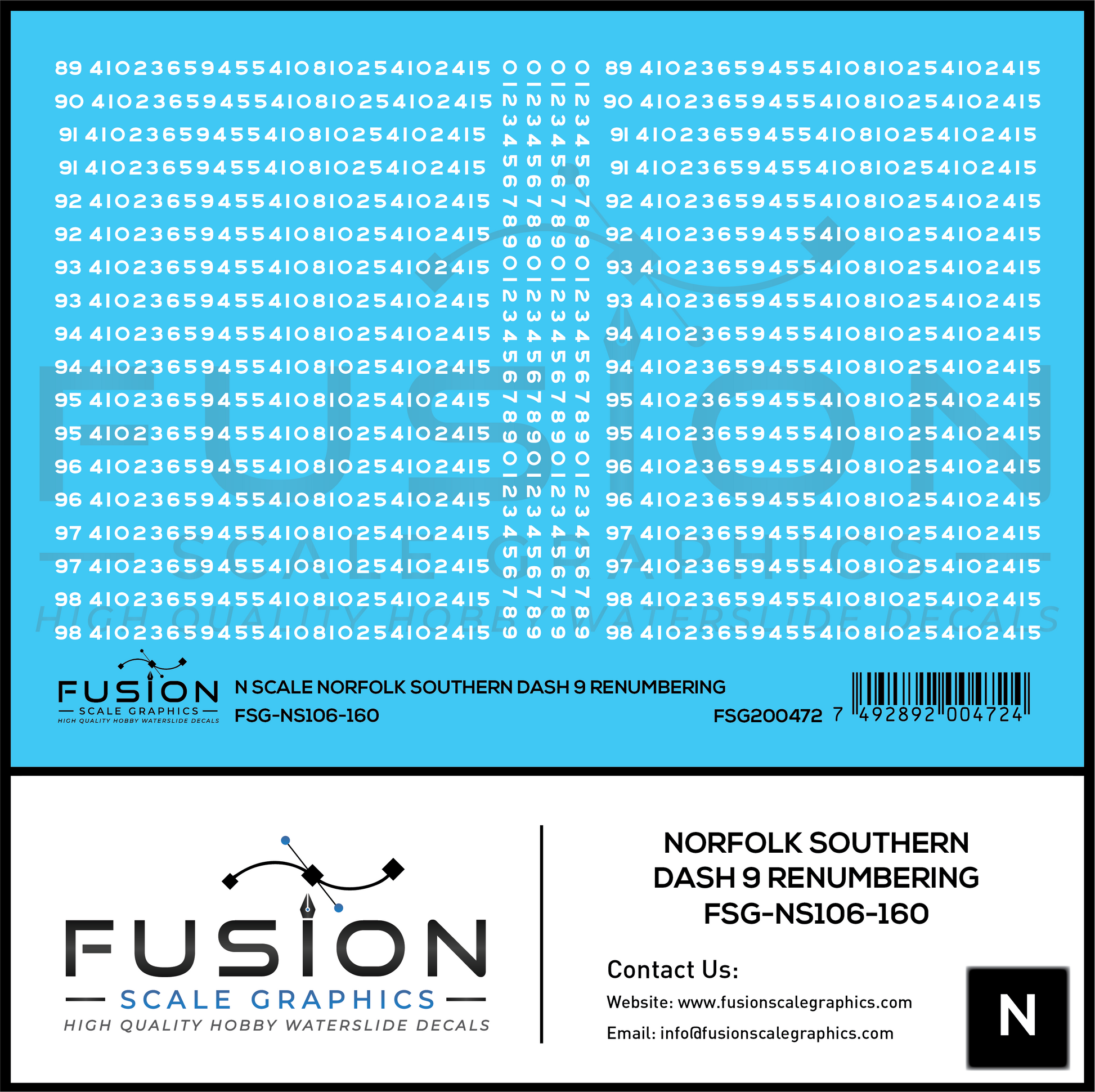 N Scale Norfolk Southern GE Dash 9 Locomotive Renumbering Decal Set