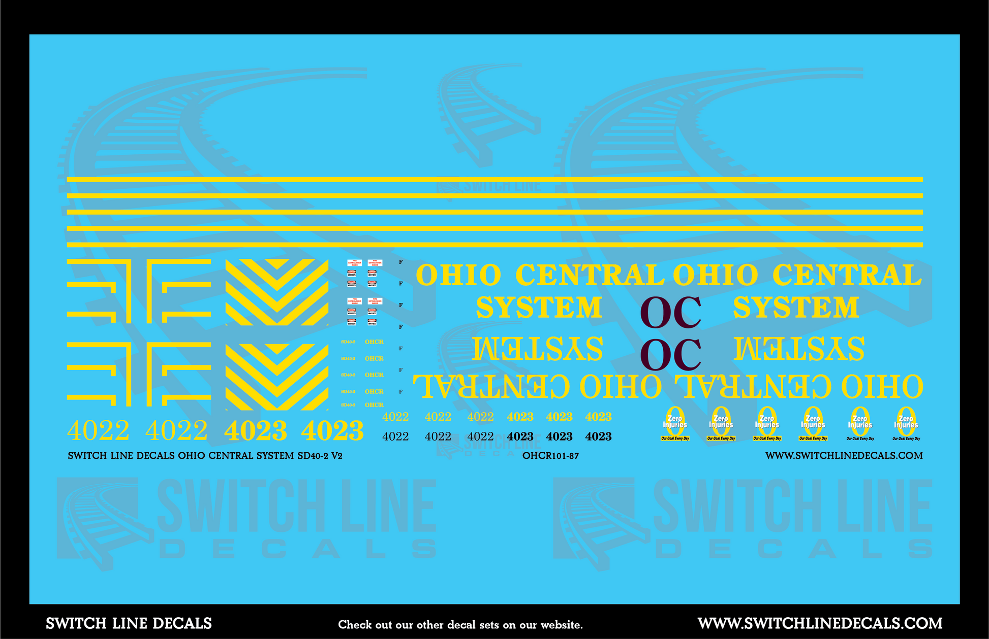 N Scale Ohio Central System SD40-2 Locomotives Decal Set V1