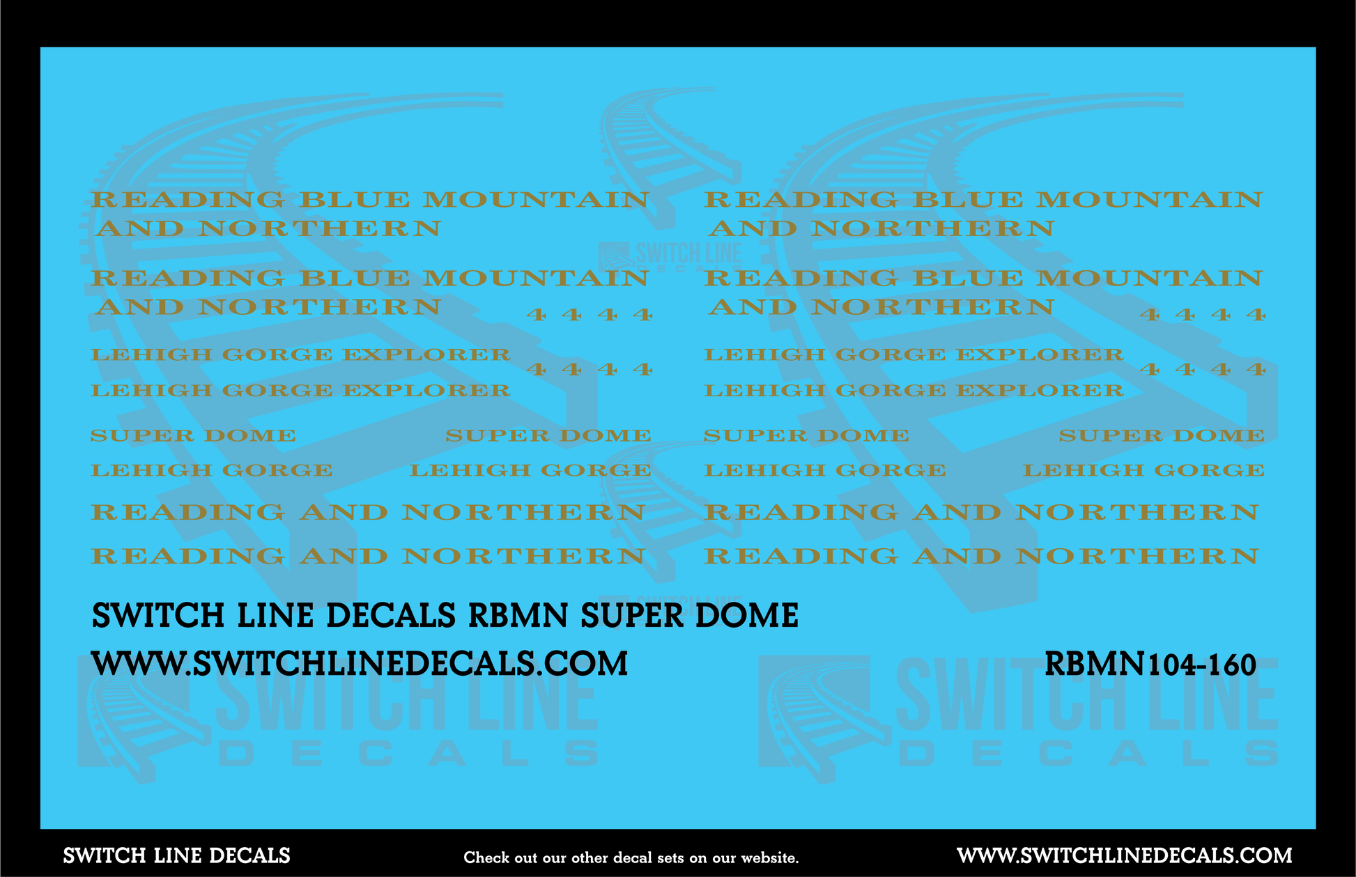N Scale Reading Blue Mountain and Northern Super Dome Car Decal Set