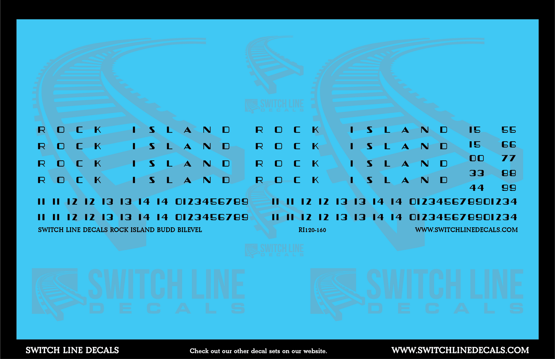N Scale Rock Island Budd Bilevel Car Decal Set