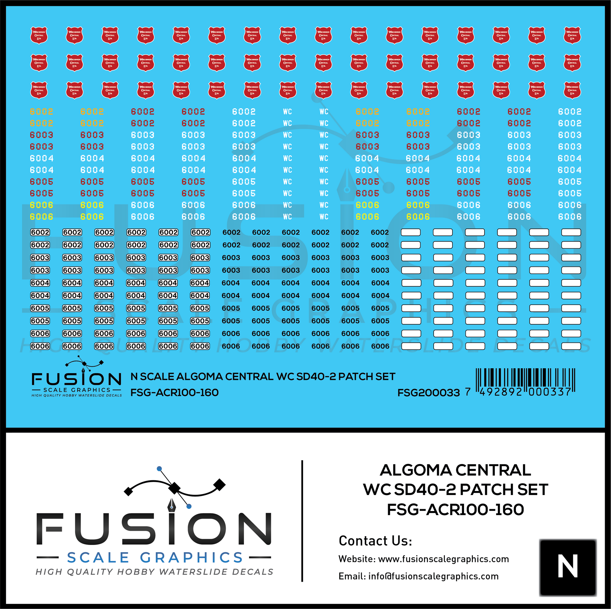 N Scale Wisconsin Central WC ex Algoma Central EMD SD40-2 Locomotive Stencil Patch Decal Set