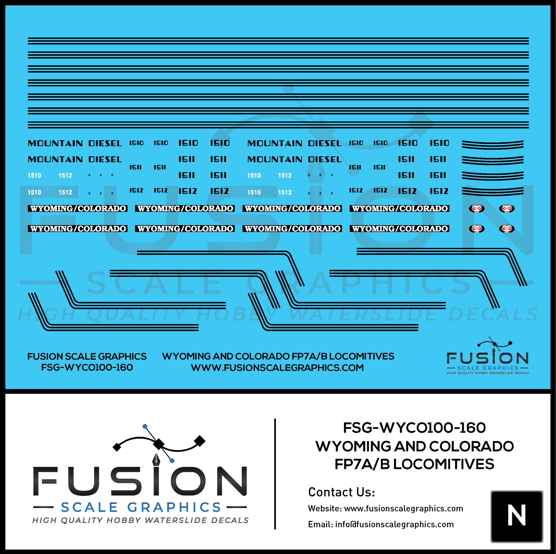 N Scale Wyoming and Colorado EMD FP7A FP7B Locomotive Decal Set