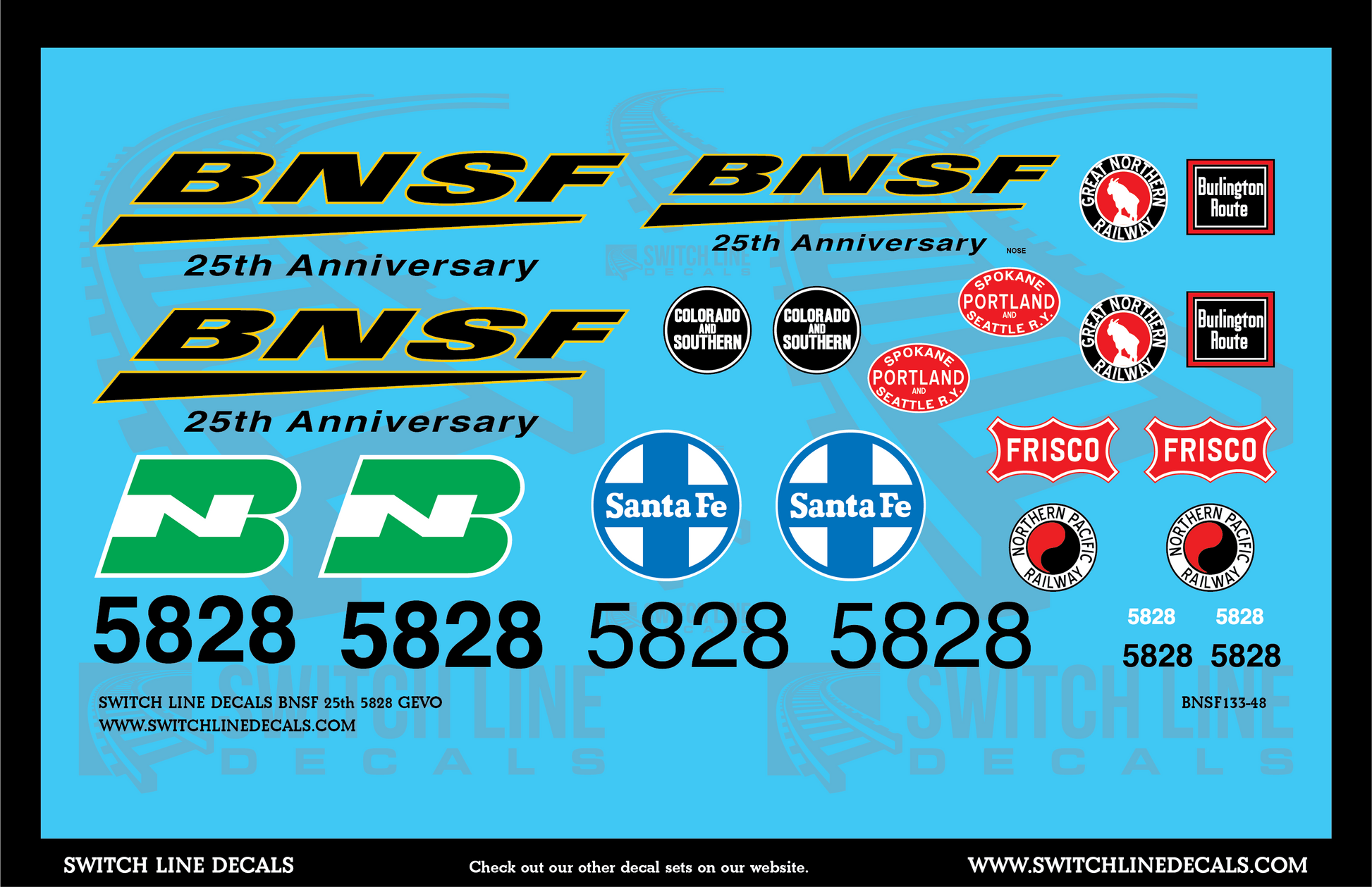 BNSF 25th 5828 GEVO Locomotive Decal Set