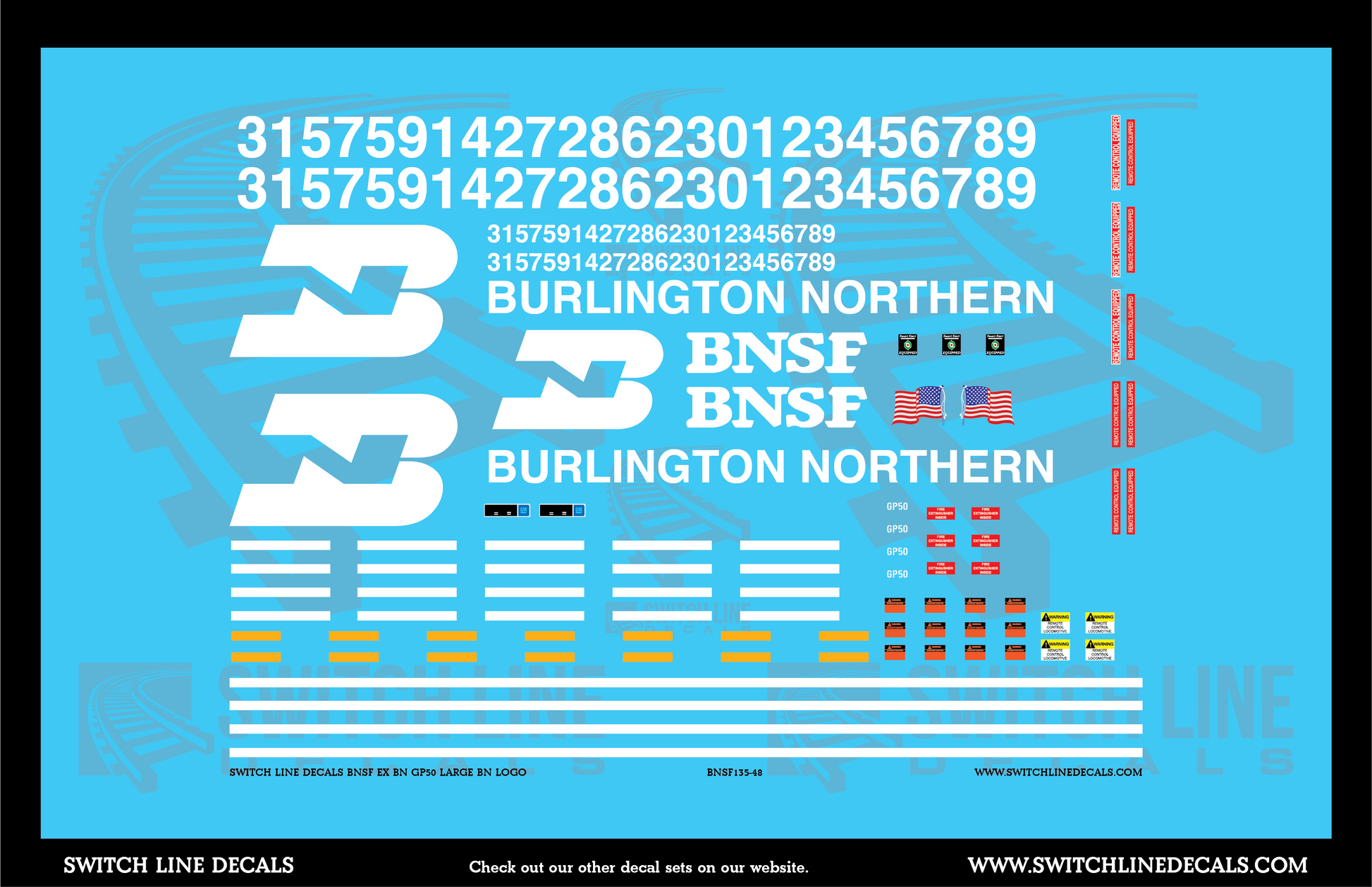 BNSF EX BN GP50 Large BN Logo Decal Set