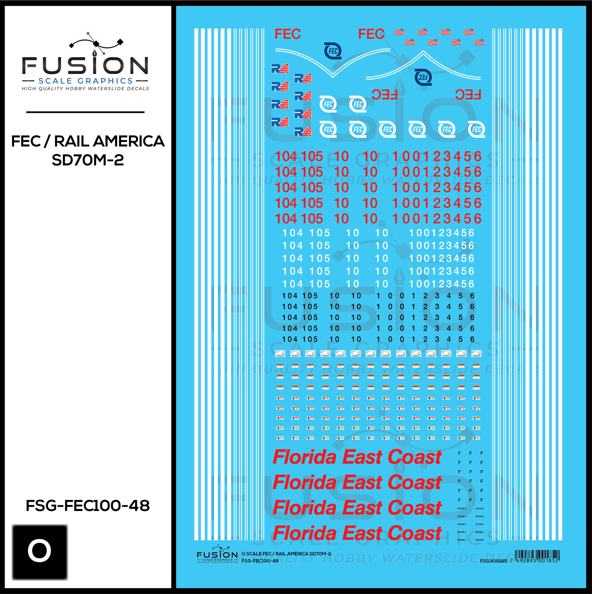 O Scale Florida East Coast/Rail America EMD SD70M-2 Locomotive Decal Set