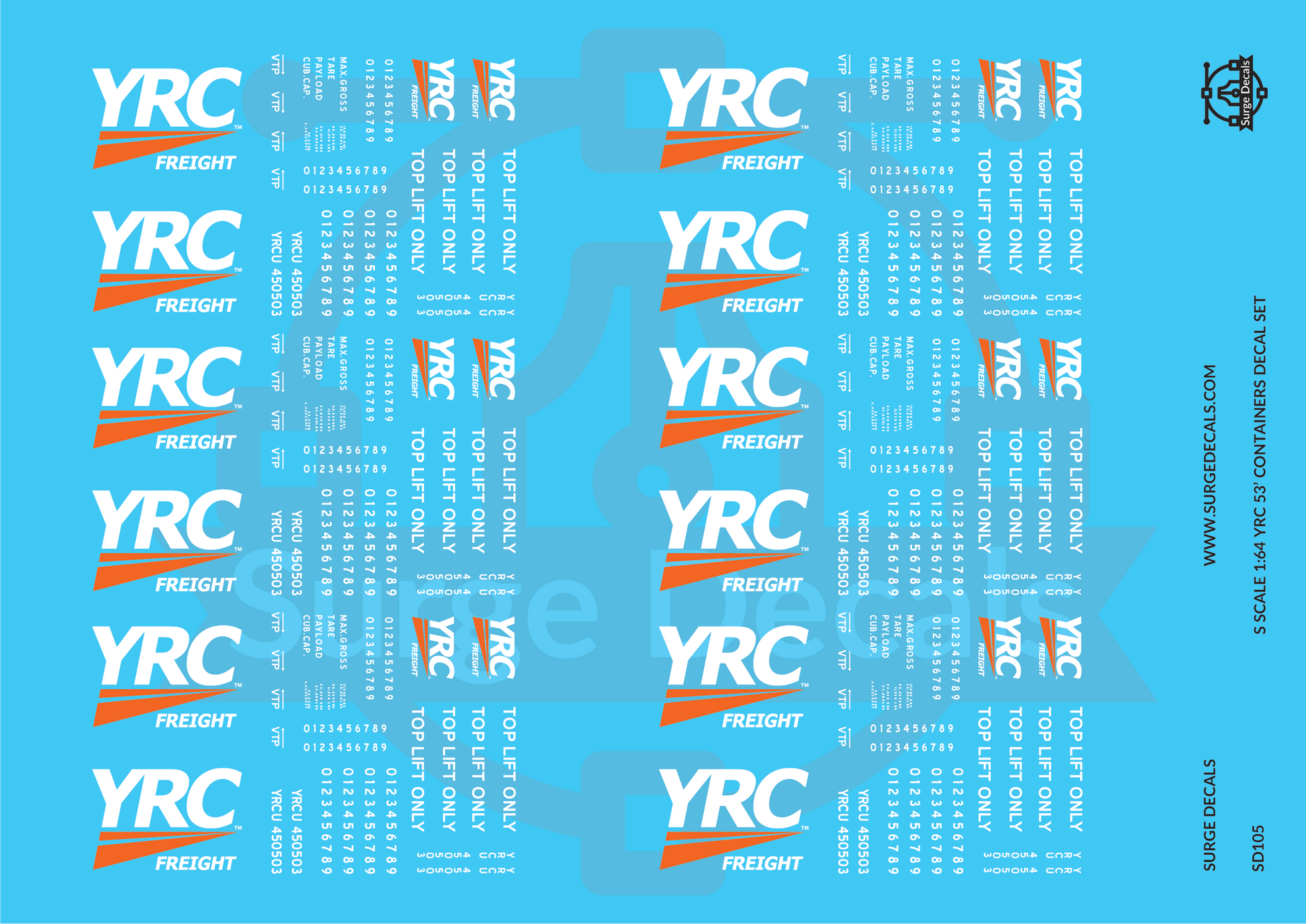 Surge Decals S 1:64 Scale YRC 53' Containers Decal Set