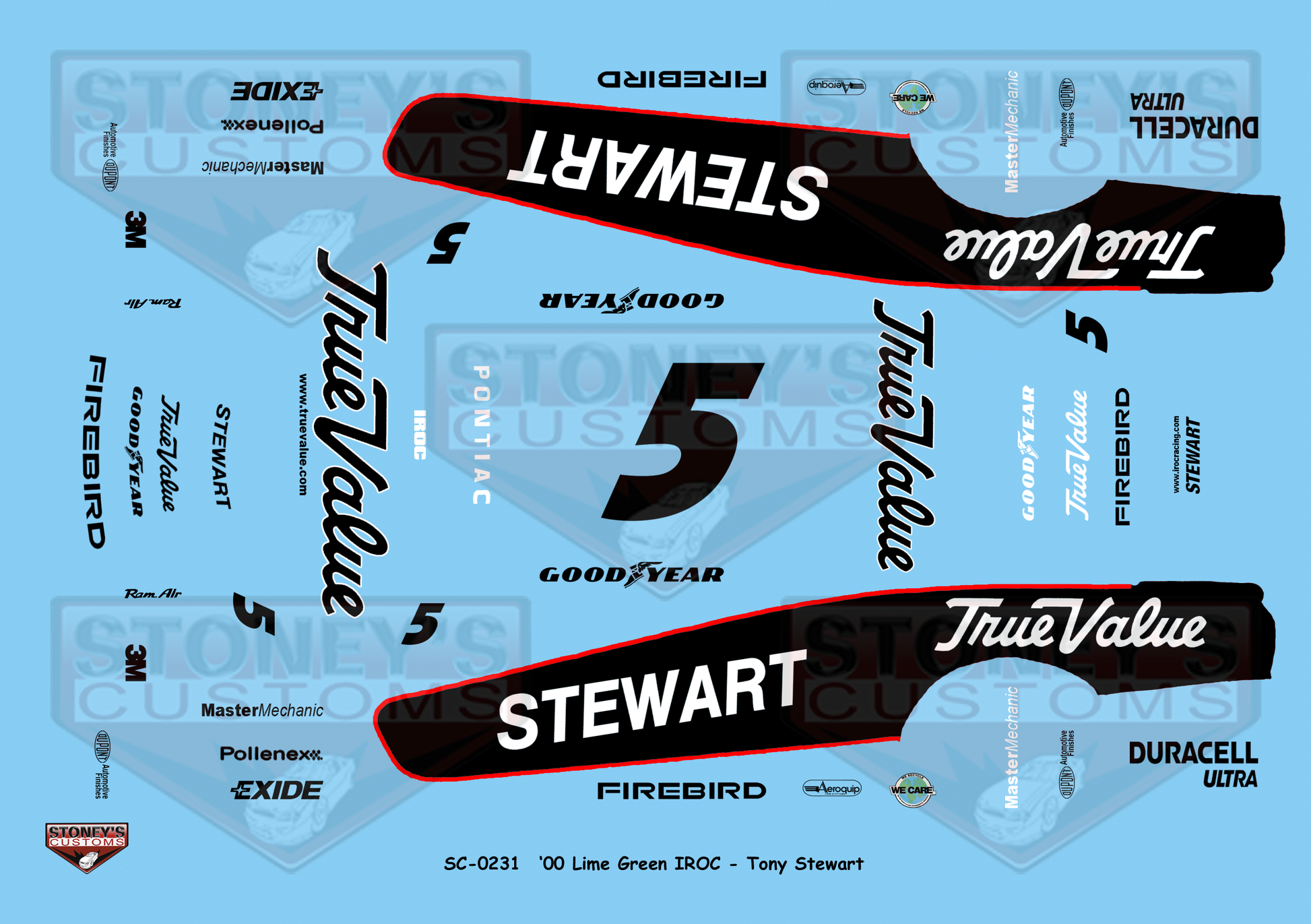 Stoney's Customs 2000 Lime Green #5 IROC Tony Stewart 1:24 Decal Set