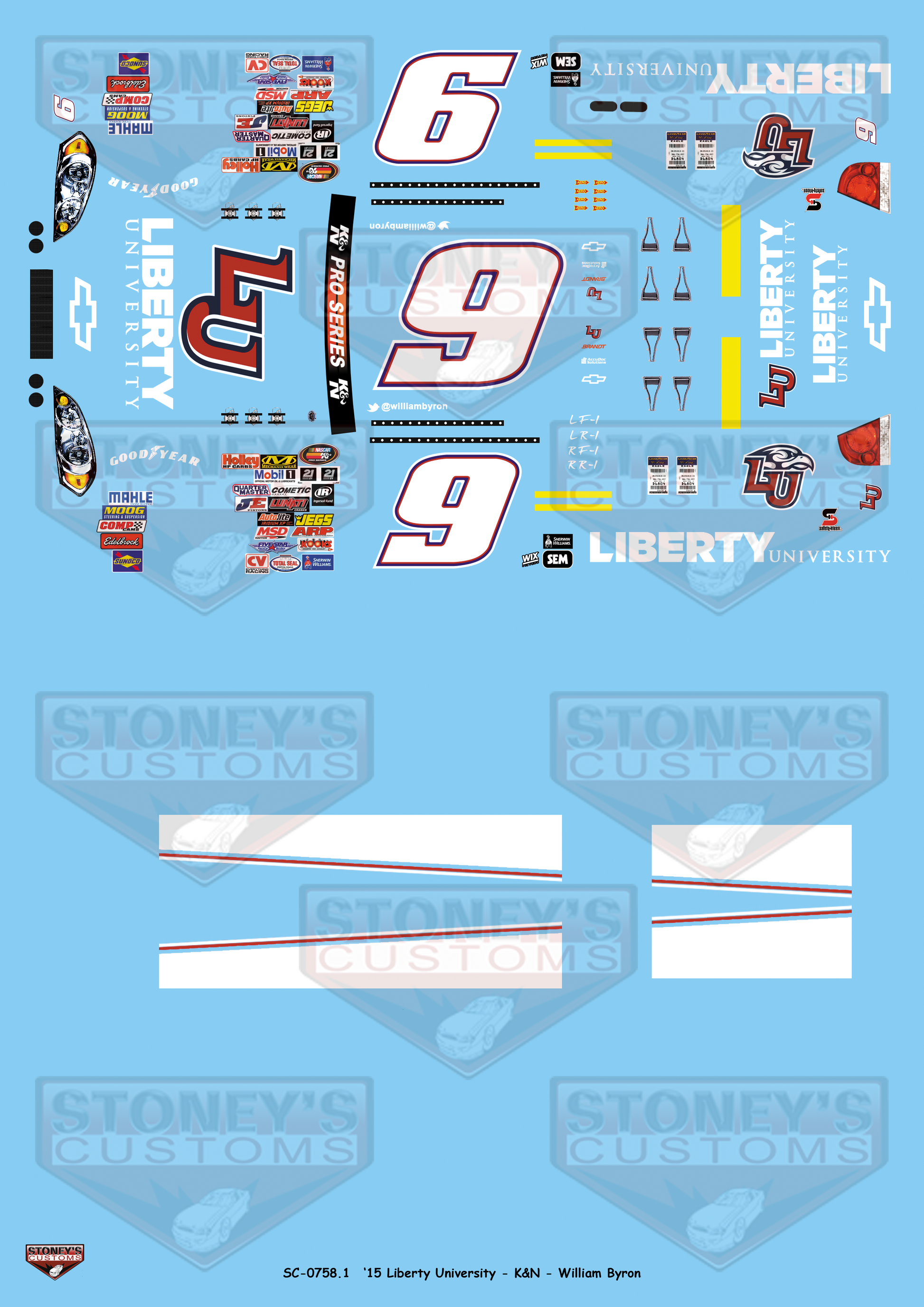 Stoney's Customs 2015 #9 Liberty University - K&N - William Byron 1:24 Decal Set