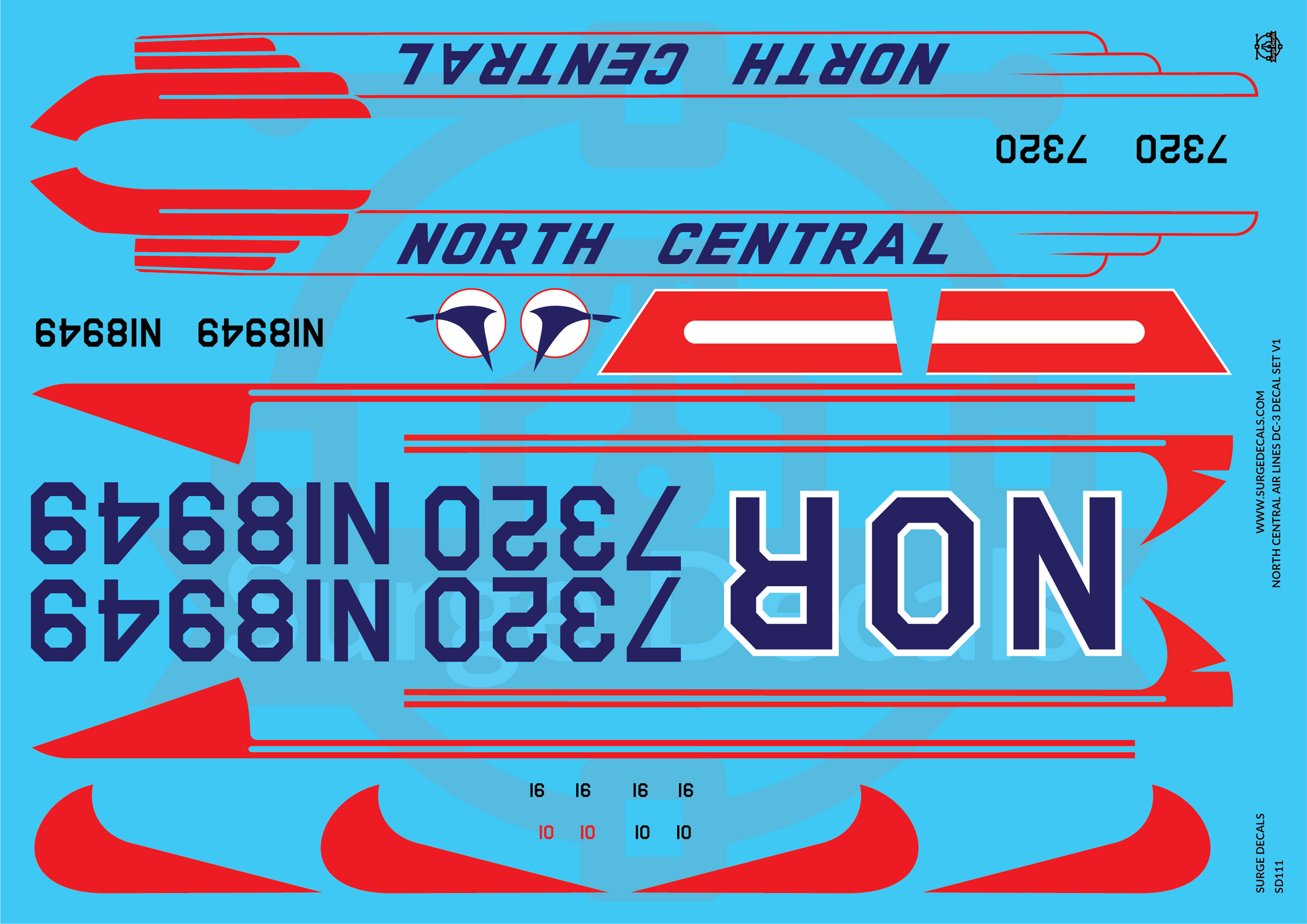 Surge Decals 1:48 Scale North Central DC-3 Airplane Decal Set