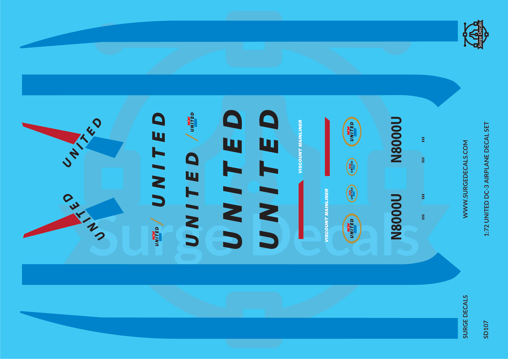 Surge Decals 1/72 United Vickers Viscount Mainliner Aircraft Decal Set